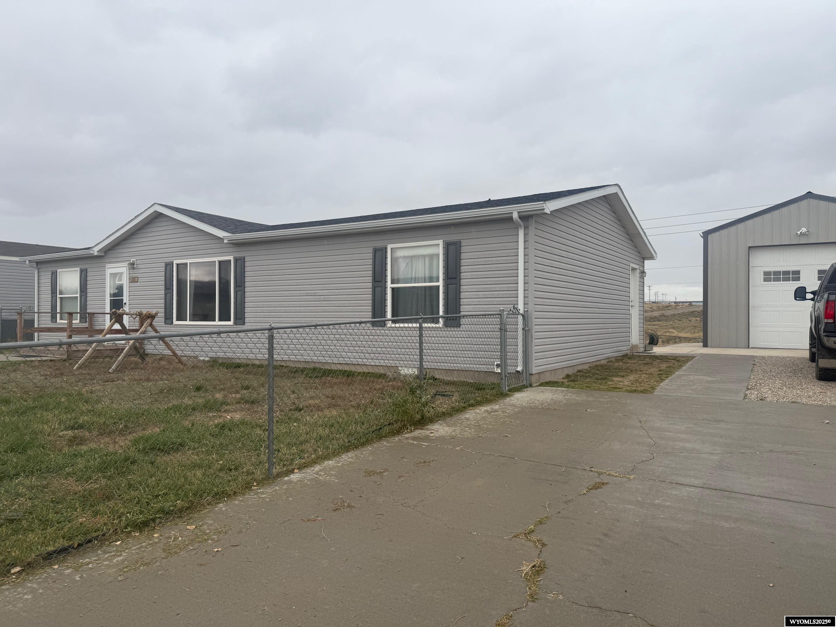 Now Available: Beautiful Open Concept Manufactured Home with SHOP. This home sits on a spacious lot and boasts 3 bedrooms and 2 full baths, perfect for those seeking both comfort and style. Step inside and you'll be greeted by vaulted ceilings and luxurious vinyl flooring that adds a touch of elegance to the home. The exterior is just as impressive, featuring seamless gutters, durable vinyl siding, a handy shed, and a fenced yard. This property also includes a fantastic 18x30 shop with 12-foot sidewalls and a 10-foot door, fully equipped with electricity. Additionally, there's extra concrete parking to accommodate multiple vehicles. Low Utility Costs! This home truly offers a unique blend of modern amenities and practical features, making it an exceptional opportunity. Call Veronica Pell for your personal tour.